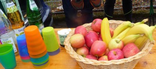 Um einer unter diesen Umständen nicht auszuschließenden Erkältung vorzubeugen, versorget LaufTreffleiter Jürgen Fuß seine Mannen und Frauen nach der Rückkehr aus dem nassen Walde mit vitaminreichen Früchten und Getränken.