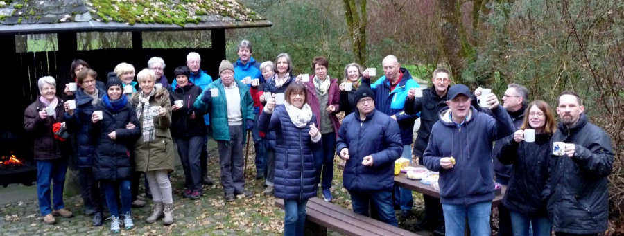 Los ging´s am Echoplatz gegenüber des Nettetal-Stadions. Der Weg führte über gut ausgebaute Wanderwege oberhalb des Nettetals und endete schließlich im Mayener Freizeitzentrum. In der dortigen Grillhütte klang die fröhliche Tour traditionell bei einem Becher Glühwein und leckeren selbstgebackenen Plätzchen in geselliger Runde fröhlich aus.