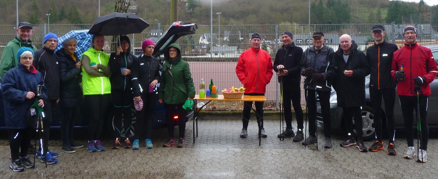 schauern konnte die über 50 Teilnehmer nicht davon abhalten, den 41. Geburtstag des LaufTreff Mayen am Sonntag mitzufeiern. Aber zunächst ging es um 9.30 Uhr für die Läufer und Walker auf die einstündige Runde durch den Mayener Stadtwald. Im Anschluss standen Vitamine und Mineralstoffe in fester und flüssiger Form bereit, um auf den Geburtstag anzustoßen.