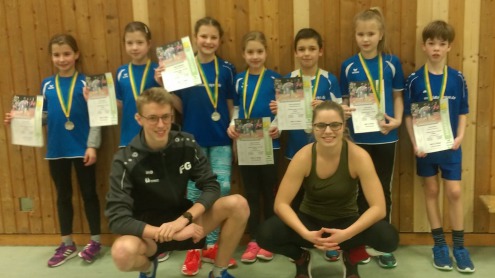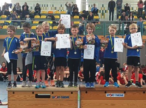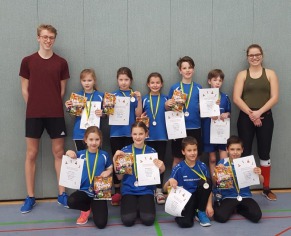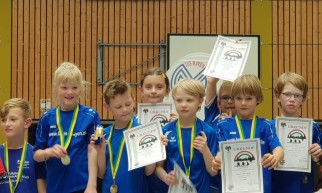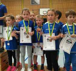 So kamen die U8-Wiesel mit Emma Gondorf, Livia Schon, Emilia Nikolay, Greta Nikolay, Josefine Mülhausen, Alessya-Joanne Adams, Julian Jäger, Jonas Weinert und Theo Frommer unter den fünf angetretenen Teams dieser Altersklasse auf den dritten Platz und wurden mit schmucken Bronzemedaillen belohnt.