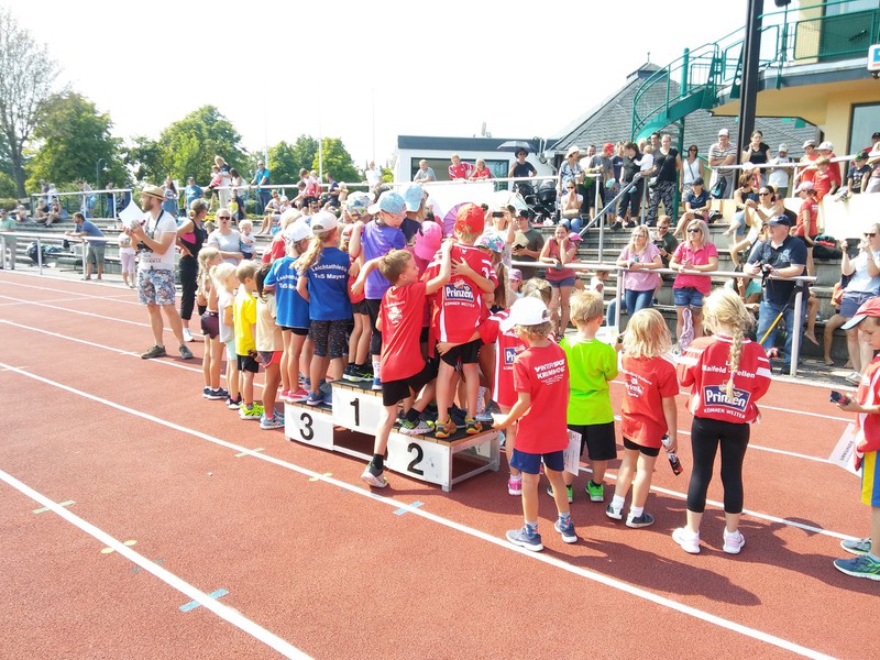 Überdies war die Station Zielweitsprung in einer irritierenden Weise hergerichtet, so dass die Kinder eher dazu verleitet wurden in die Höhe statt in die Weite zu springen. Lange Gesichter gab´s dann schließlich bei der Siegerehrung – als sie denn endlich stattfand. Hier belegten die tapfer und eigentlich nicht schlecht kämpfenden Mayener Teams völlig überraschend die hinteren Plätze, was vor allem beim U10 Team für ziemlich viel Enttäuschung sorgte.