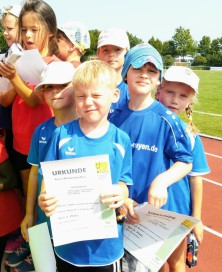 Das beste Resultat im absolvierten Dreikampf – bestehend aus 50m-Sprint, Weitsprung und Ballwurf – erzielte Jan-Luca Bastian (M10). Mit 948 Punkten belegte er den zweiten Platz unter den 16 gemeldeten Mitstreitern und wurde somit Vize-Bezirksmeister seines Jahrgangs. Für den Sprint benötigte er 8,5 Sekunden, den Ball warf er 37,50 Meter und beim Weitsprung landete er in seinem besten von drei Versuchen bei 3,62m.