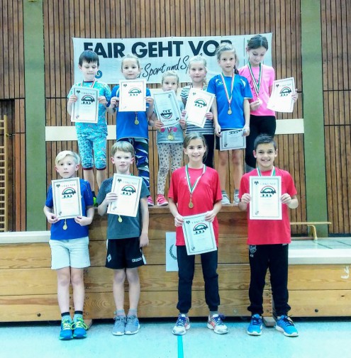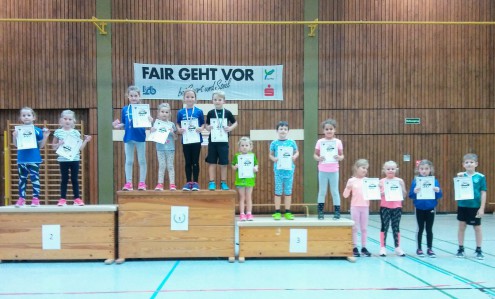 1. Plätze erzielten: Jonas Weinert, Livia Schon in der AK U8, Stephan Barbaev (M9) Kolja Hermann (W9), Maximilian Meid (M8) und Lea Wiesener (W8) in der AK U10, sowie Hannes Emmerich (M11) und Nika Hellmann (W11) in der AK U12.