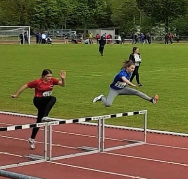 Ebenfalls einen Platz auf dem Dierdorfer Sieger-podest erreichte Laura Weide im Dreikampf der W10; für 8,08 Sekunden auf 50 m, 3,65m beim Weisprung und 21 Metern beim Ballwurf erhielt sie insgesamt 1.068 Punkte, was letztlich den 3. Platz – honoriert mit einer bronzenen Medaille - bedeutete. Schwester Sophie Weide landete mit 949 Punkten (Sprint 8,17s, Weit 3,21, Ball 17,0m) auf dem undankbaren vierten Platz.