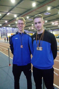 Jakob Schemionek landete mit 1.555 Punkten (Sprint 7,58s, Weitsprung 4,47m, Hochsprung 1,28m, Kugel 7,34m) auf dem 6. Platz, und Jan Reinart belegte mit 1.538 Punkten (Sprint 7,66s, Weitsprung 4,66m, Hochsprung 1,32m, Kugel 6,40m) schließlich Platz Sieben.