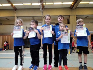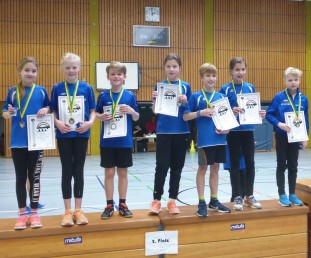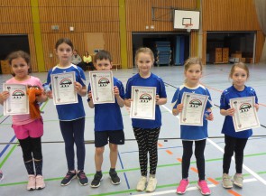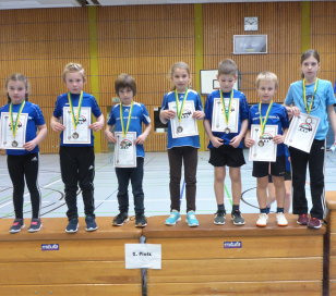Das mag daran gelegen haben, dass das Team nur mit der Minimalbesetzung von fünf Kindern an den Start gehen konnte und während der Wettkämpfe auch noch zwei Kinder verletzungsbedingt nicht an allen Disziplinen (2x20m-Sprint; Platz 7, Hüpferstaffel; Platz 2, Schlagwurf; Platz 4)) teilnehmen konnten. Umso beachtlicher daher, dass dennoch unter den sieben angetretenen Teams der 4.Gesamtplatz für unsere Jüngsten heraus gesprungen ist.