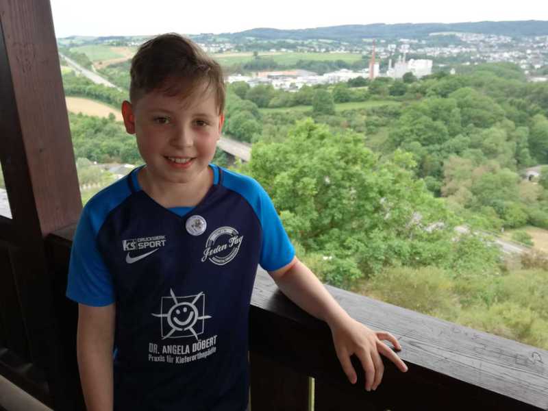 Anschließend fahrt ihr dann bitte zum nahegelegen Parkplatz des Mayener Katzenbergs (Zufahrt über Katzenberger Weg oder Barbarastraße). Von dort lauft ihr dann bitte hoch bis zum Aussichtspunkt Römerwarte. Die Strecke ist etwa 350 Meter lang (das ist weniger, als eine Runde im Stadion). Dort oben könnt ihr eine herrliche Rundsicht über Mayen und Umgebung genießen. Bevor Ihr die Römerwarte wieder verlasst, macht bitte ein Portraitfoto von Euch, auf dem Ihr mit Eurem LATuS vs. Corona-Button (möglichst am Vereins-Shirt) zu sehen seid. Die Fotos werde ich zur Erinnerung an diese ungewöhnliche Zeit in einer Galerie auf unserer Website veröffentlichen.