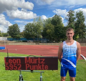 So sprintete er die 100m mit 11,21 Sekunden so schnell wie noch nie zuvor in seinem Leben, den 700 Gramm schweren Speer warf er mit 45,18m weiter denn je. Bei sieben Disziplinen konnte Mürtz seine Bestleistungen leider nicht erreichen und blieb insbesondere beim Weitsprung (5,86m) und beim Hochsprung (1,80m) deutlich darunter. Die weiteren Ergebnisse: Kugelstoß 12,17m, 400m 54,05s, 110m Hürden 15,67, Diskus 33,62m, Stabhochsprung 3,50m. Beim abschließenden 1500m-Lauf (5:19,15min) konnte Leon sich ebenfalls verbessern und schaffte es somit summa summarum auf 6.012 Punkte.