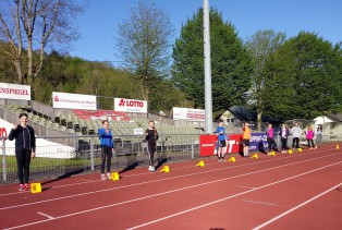 Eine schöne Trainingseinheit verbrachten am vergangenen Mittwoch 15 Kinder der AK U12 und U14 im Nettetal-Stadion am ersten und zugleich letzten Tag, an dem ein Training im Sinne des Corona-Trainingskonzeptes der Kinder- und Jugendabteilung zulässig und aufgrund des frühlingsghaften Wetters auch möglich war.