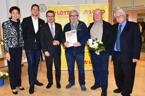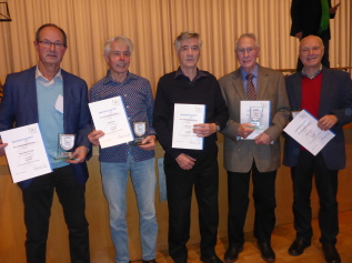 Hans-Jürgen Cornely, Adolf Nehren, Hugo Augel, Paul Nobbe und Günter Simons erhielten für ihre herausragenden Leistungen in der Sportart Leichtathletik von Landrat Dr. Alexander Saftig einen Ehrenpokal und eine entsprechende Urkunde ausgehändigt.