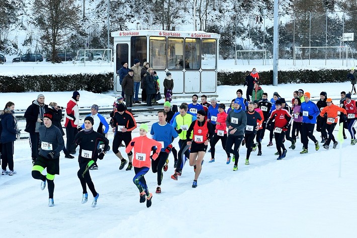 Pünktlich um 14.15 wurde die winterliche Stille im Stadion kurzfristig durch den Startschuss für die Auftaktveranstaltung, den 5.600m Winter-Walk, unterbrochen. Sodann knirschte nur noch der Schnee unter den Sohlen der Laufschuhe der ins Nettetal davon eilenden Walker und Walkerinnen.