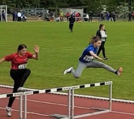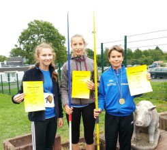 Lena Wolf setzte sich souverän gegen eine zahlenmäßig starke Konkurrenz im Dreikampf durch und sicherte sich somit ihren ersten Titel als Bezirksmeisterin. Lag sie nach der ersten Disziplin (Ballwurf) mit einer Weite von 32,50m noch auf dem dritten Rang, konnte sie durch einen beachtlichen Weitsprung (4,28m) und den schnellsten Sprint aller Teilnehmerinnen über die 75m (11,07s) Boden und Punkte gut machen und setzte sich somit schließlich an die Spitze des 14-köpfigen Teilnehmerfeldes.
