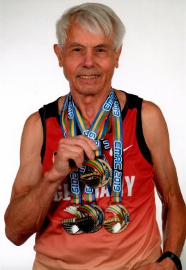 Mit den Deutschen 4x100 und 4x400m Staffeln seiner Altersklasse Ü-80 wurde er jeweils Europameister.
