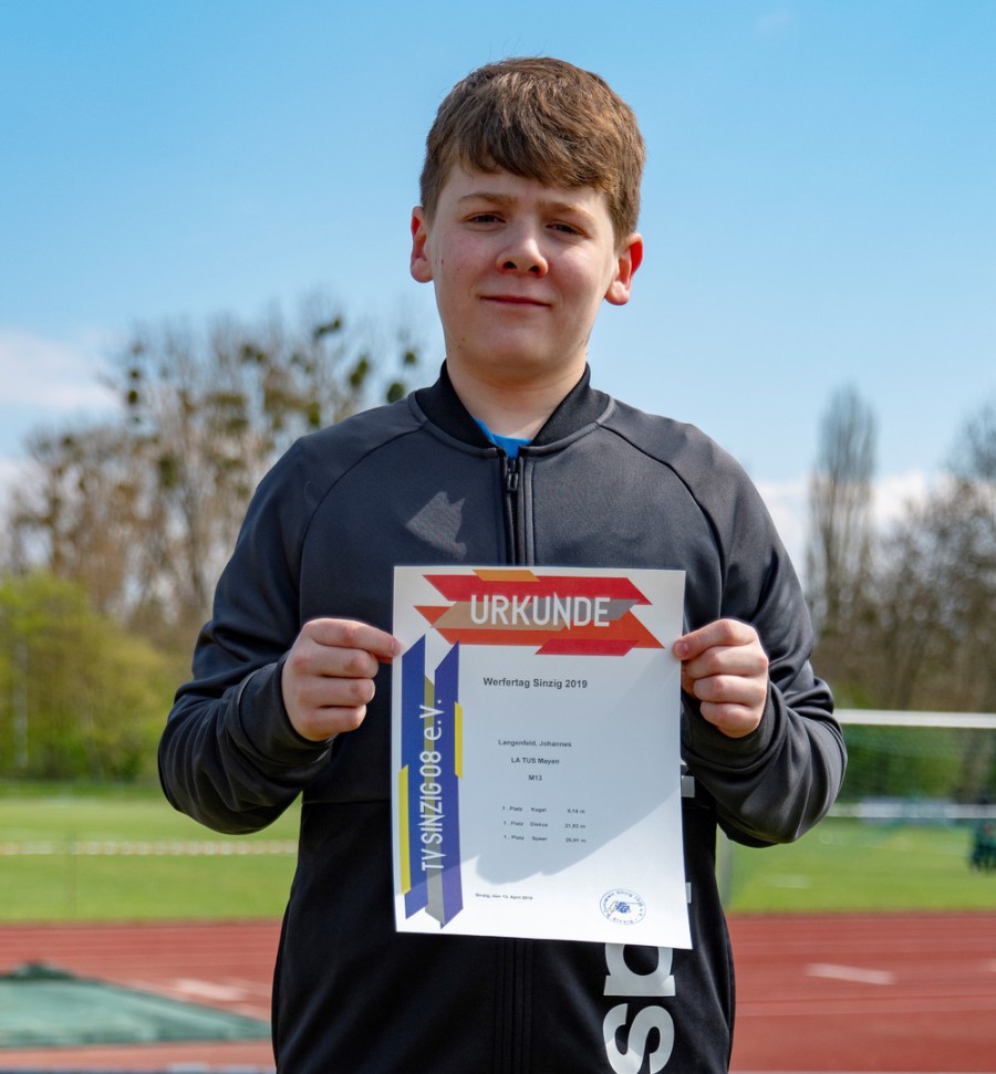 Johannes Langenfeld (U14) beteiligte sich zum zweiten Mal in Folge an den Werferwettkämpfen in Sinzig, bei denen er seine Titel, die er im vergangenen Jahr geholt hatte, verteidigen wollte.