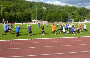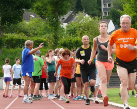 „In unserem schönen Stadion wird Fußball gespielt“ wissen viele Mitbürger über Mayens Schmuckstück. Seit vielen Jahren treffen sich montags um 18.00 Uhr nicht nur die Kinder der Kinderleicht-athletik zum Training, sondern eine Gruppe bewegungshungriger Frauen und Männer jeden Alters.