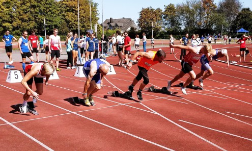 Die beiden Jugendlichen traten in jeweils vier Disziplinen an. So versuchte sich Katharina (W14) zunächst im Hochsprung und bestätigte dabei offiziell ihre Trainingsbestleistung von übersprungenen 1,30m, was ihr den 2. Platz in diesem Wettbewerb einbrachte. Zwar übersprang auch die Erstplatzierte „lediglich“ 1,30m, hatte jedoch insgesamt im Wettbewerb einen Fehlversuch weniger. Beim folgenden Kugelstoß-Wettbewerb erzielte Katharina sodann mit 8,24m eine neue persönliche Bestleistung und sicherte sich damit zugleich den 1. Platz unter den beiden Mitkonkurrentinnen in dieser Disziplin.