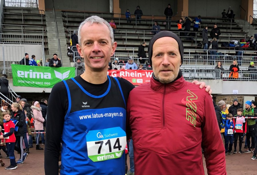 Bei den Bezirksmeisterschaften im Crosslauf in Neuwied starteten für den LA TuS Mayen Andreas Nickenig (M 50) und Winfried Hendges (M60) über die Mittelstreckendistanz von 4 km. Der abwechslungsreiche 1 km lange Rundkurs startete auf der Aschenbahn im Raiffeisen Stadion und verlief mit einigen Richtungswechseln unter anderem über zwei Sandpassagen im angrenzenden Park. Beide Mayener Athleten konnten souverän ihre jeweiligen Altersklassen gewinnen. Andreas Nickenig kam in 15:02 min. und Winfried Hendges in 19:31 min. erschöpft aber zufrieden ins Ziel.