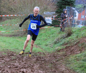 Zwei Wochen nach seinem Rheinland-Meister Titel im Straßenlauf startete unser Mitglied Andreas Nickenig bei den Landesmeisterschaften im Crosslauf in Laubach im Hunsrück. Dort galt es drei Runden und insgesamt 5,43 Kilometer auf einem anspruchsvollen und zum Teil vom Regen der Vortage aufgeweichten Wiesenparcours zu bewältigen. Nach einer verhaltenen ersten Runde konnte Andreas den bis dahin Zweitplatzierten seiner Altersklasse in der Mitte der 2. Runde überholen und diesen Platz als Vizemeister der M55 sicher ins Ziel laufen.