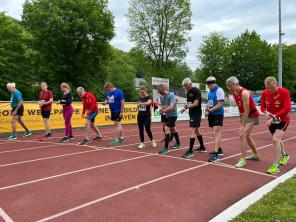 Allen voran Günter Simon, der in seiner Altersklasse M 85 über 200 m in 39,82 Sek. und über 400 m in 95,08 Sek. jeweils die Vizemeisterschaft erringen konnte...