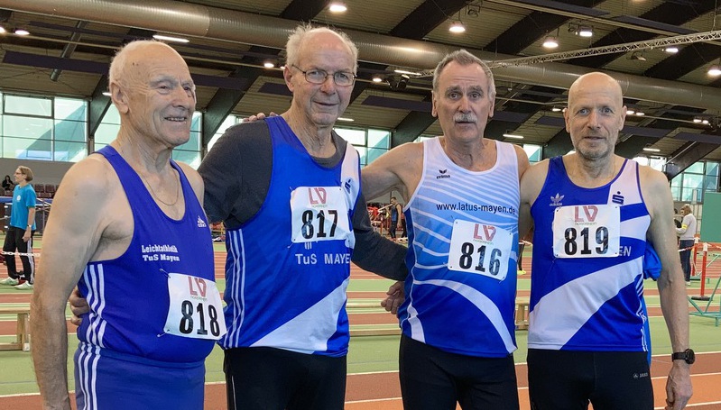 Sportlich und mit überzeugenden Leistungen startete das Mayener Leichtathletik-Quartett mit den Teilnehmern Herbert Brück, Heinz Geisbüsch, Günther Simons und Winfried Hendges in das Sportjahr 2023. Die vier motivierten Mitglieder der Seniorenabteilung des LA TuS Mayen reisten nämlich zu den offenen nordrhein-westfälischen Hallen-Meisterschaften nach Düsseldorf und beteiligten sich dort durchaus erfolgreich an den Sprint- und Sprung-Disziplinen.