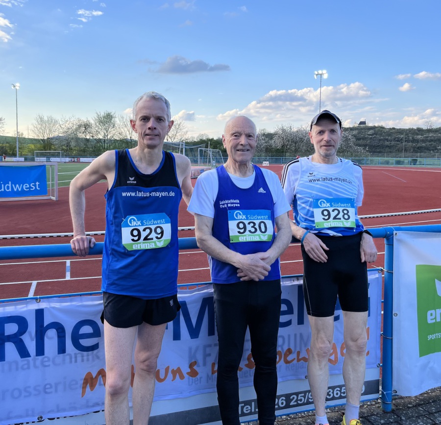 Unter die Teilnehmer im Grenzlandstadion mischten sich auch drei Senioren der LATUS Mayen, die