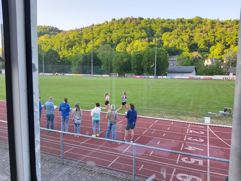 Deutlich mehr und zugleich das meiste Interesse fand der Wettbewerb über die Mittelstrecke von 800m, bei dem es galt, zwei möglichst schnelle Stadionrunden nonstop zu absolvieren. Insgesamt 38 Läufer und Läuferinnen fanden sich, aufgeteilt in vier Läufe, ein und finishten mit respektablen und vielen persönlichen Bestzeiten. Zeitschnellster Teilnehmer war hier Matthias Simon vom Postsportverein Trier mit der beeindruckenden Zeit von 1:59,92. Schnellste Läuferin war Frida Balles vom TV Eintracht Cochem mit 2:28,03 min. Erfreulich war, dass sich bei diesen Läufen auch viele Läufer und Läuferinnen aus den Altersklassen der Kinder und Jugend beteiligten.